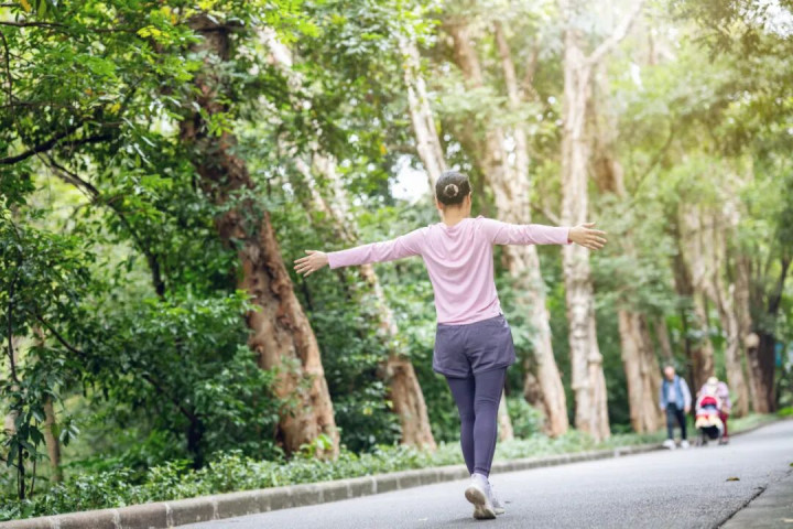 3.倒着行走:能够“激活”大脑 倒走不仅能挑战身体协调性,还能“激活”大脑。2019年《步态和姿势》刊发的一项研究发现,倒走可以改善认知功能、本体感觉和空间意识。倒走时,对非视觉信息的高度依赖可以激活大脑中与空间感知和运动规划相关的区域,从而提升认知功能和空间意识。 4.屈步走路:帮助降低血糖 中日友好医院骨科副主任医师陈星佐刊文介绍,有糖尿病的患者,可以多做屈步走,这个小动作对调控血糖很有帮助。 先向前迈出一大步,然后前腿弯曲,呈弓箭步,让大腿与地面平行,坚持一两秒钟,然后再往前走换另一条腿。 5.端臂健走:缓解颈肩不适 北京体育大学运动医学与康复学院副院长钱菁华刊文指出,进行端臂健走有助于缓解久坐者的颈椎病和肩周炎等带来的疼痛。 走路时双臂在腰前交叉,然后慢慢上抬至下颌,如同脱套头衫一样,而后伸直双臂,到达顶点位置后缓慢下放,并让肩膀充分放松。